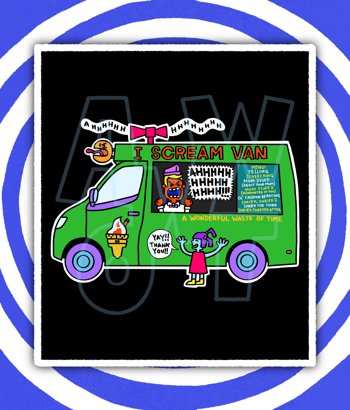 OH BOY!! THE I SCREAM VAN HAS ARRIVED!! I HOPE THEY STILL HAVE SOME ROCKY ROAD RAGE!!