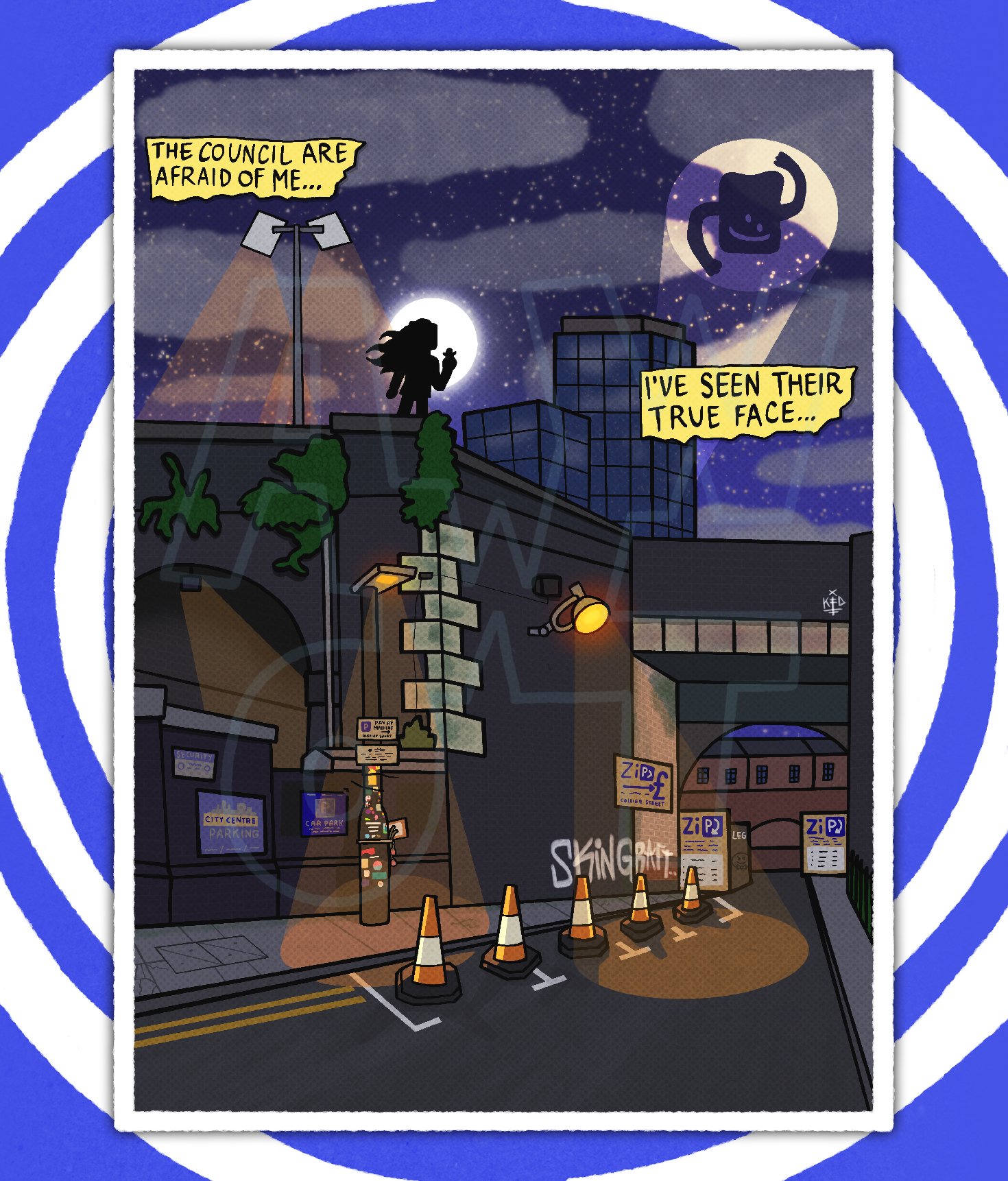 Superhero Zoë Bread watches over Collier Street, ready to swoop in and stop bad tickets, defeat lying signs and destroy the evil council!! Complete with cones x5, the bread signal and the tribute lamppost!!